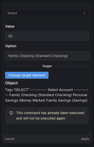 Click, Write, and Select are automatically detected by Harness AIT. Users don't need to select these commands from a list.