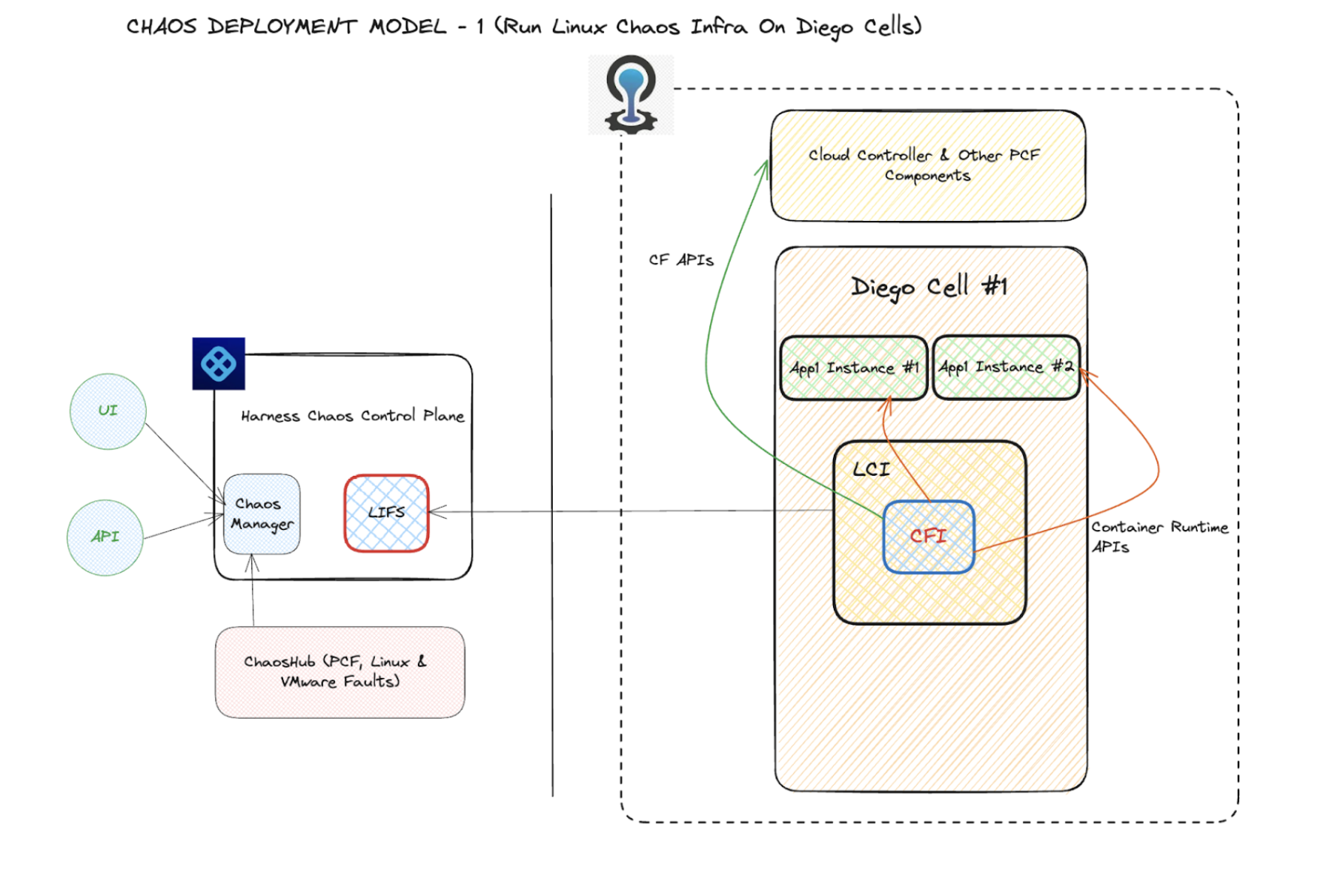: Installs LCI and CFI in a Diego Cell VM. This allows the fault blast radius to be confined to the app containers and application processes on the cell under test only, with respect to purely CF-API driven faults and app instance (or container) level fault types.