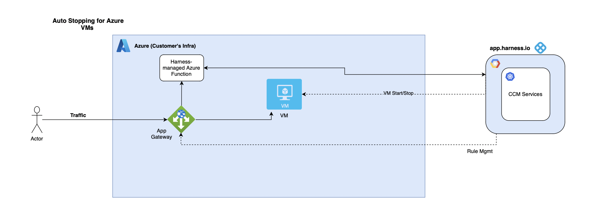 • A suite of CCM services collaborates seamlessly, orchestrating the AutoStopping mechanism tailored for Azure VMs. These services serve as the backbone, driving automation and intelligence.