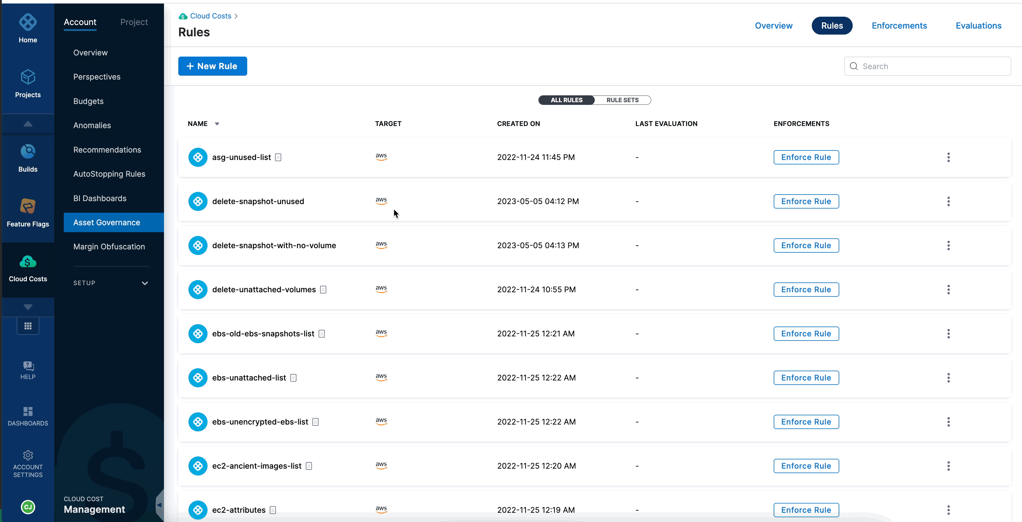 2. Select Asset Governance. You can create a new rule from either of the following pages: