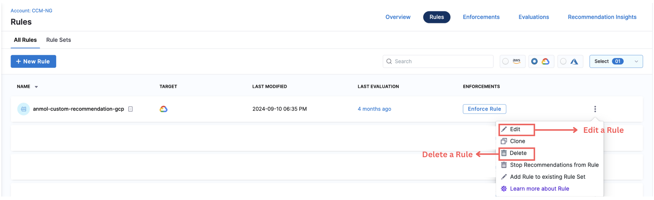 Rules help you set up Asset Governance for your cloud provider. A Rule is essentially a small file with a set of logic that you can run on your cloud infrastructure. For example, there might be a scenario in which you want to delete all GCP snapshots older than 14 days. In such a case, we write and run a rule which does this for us.