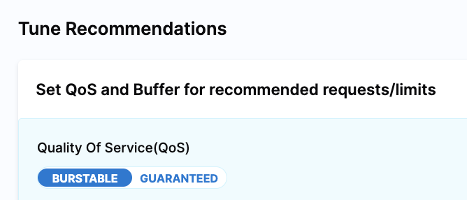 You can also tune recommendations by changing the Quality of Service (QoS) and the percentage of recommended CPU and memory requests/limits buffer.