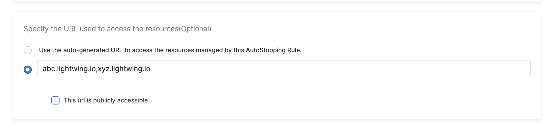 Auto-generated URL You can use the auto-generated URL to access the resources managed by this AutoStopping Rule.