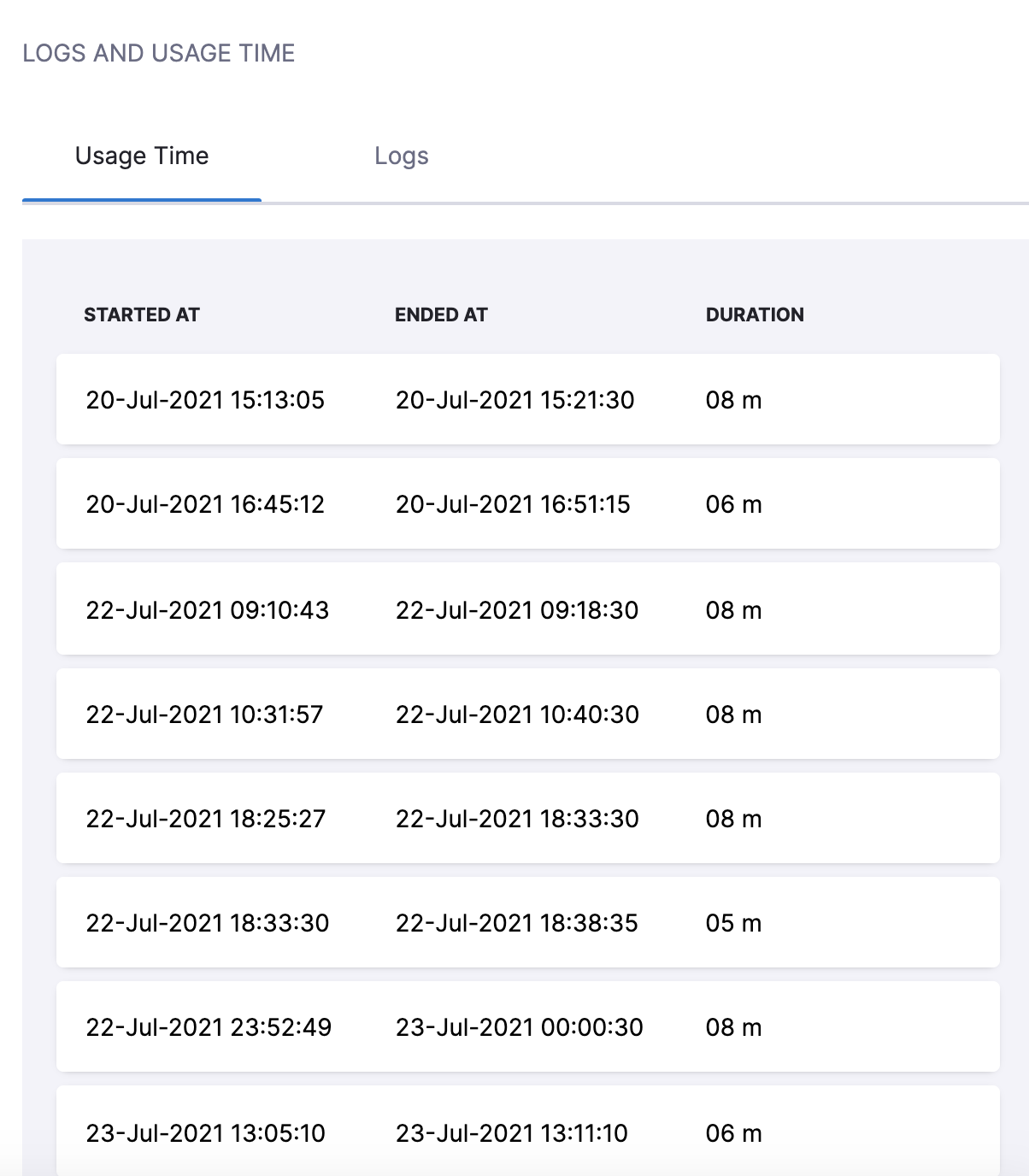 - Usage Time: This shows the details of the time at which the rule started and ended for seven days.