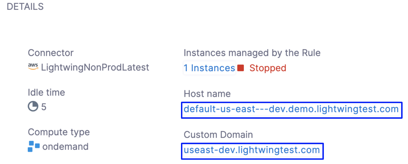 In AutoStopping Rules, in Summary of Rules, click on the Custom Domain or Hostname of the selected instance.