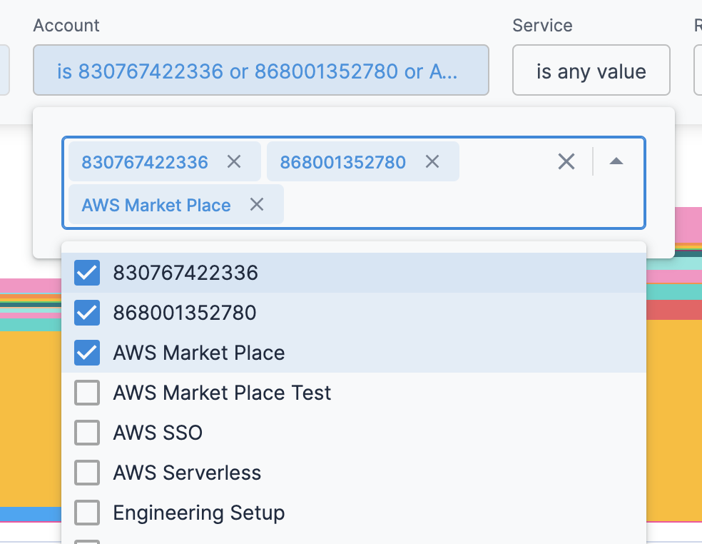 3. In Service, select the service for which you want to view the cost. You can select multiple Services.