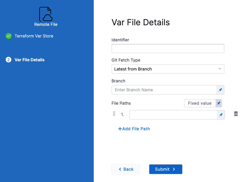 - Click Add Terraform Var File, and then click Add Remote.