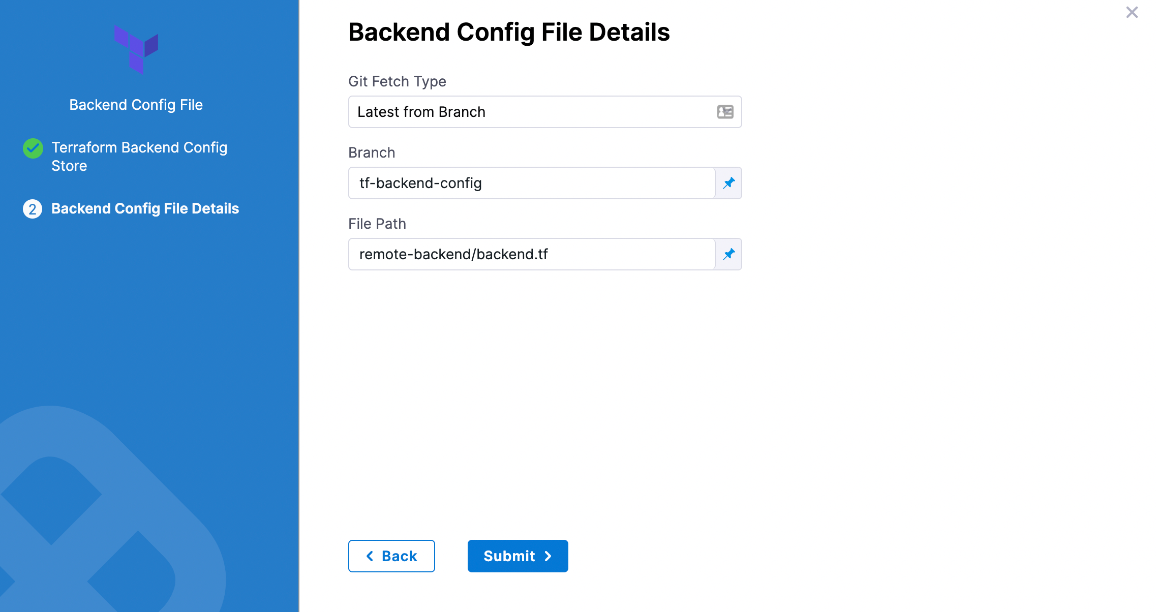 Your Terraform Plan step is now ready. You can now configure a Terraform Apply, Destory, or Rollback step that can use the Terraform script from this Terraform Plan step.