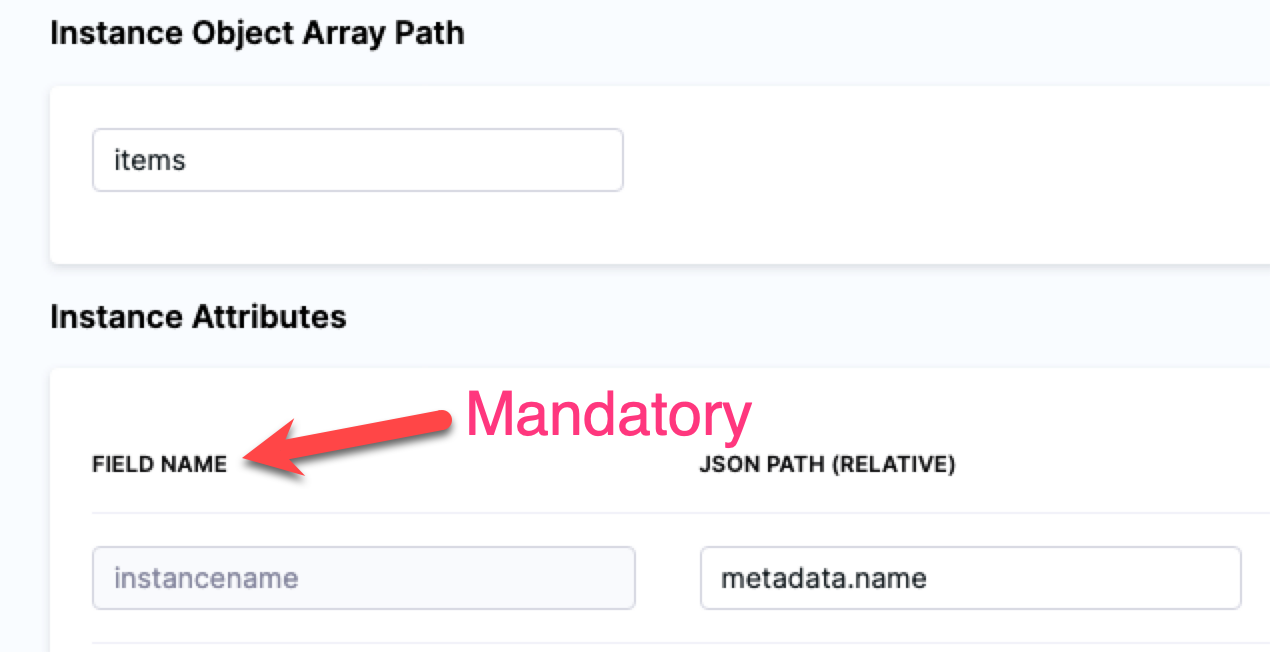 . - Instance Attributes: the JSON path to the instance name label for the target instances.Mapping the fieldname