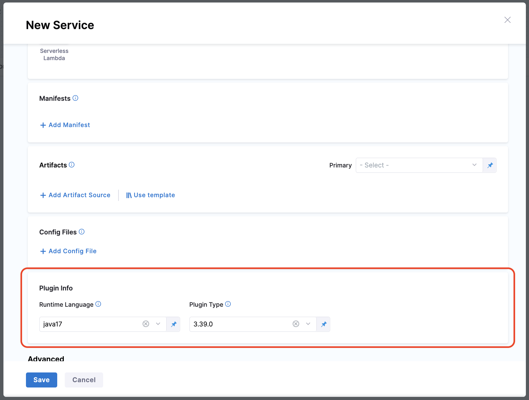 file and ZIP artifact to a Harness Pipeline stage. - Define your AWS Lambda service as the deployment target.