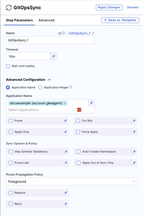 Once your GitOps application is updated, you can use the GitOps Sync step to deploy your changes.