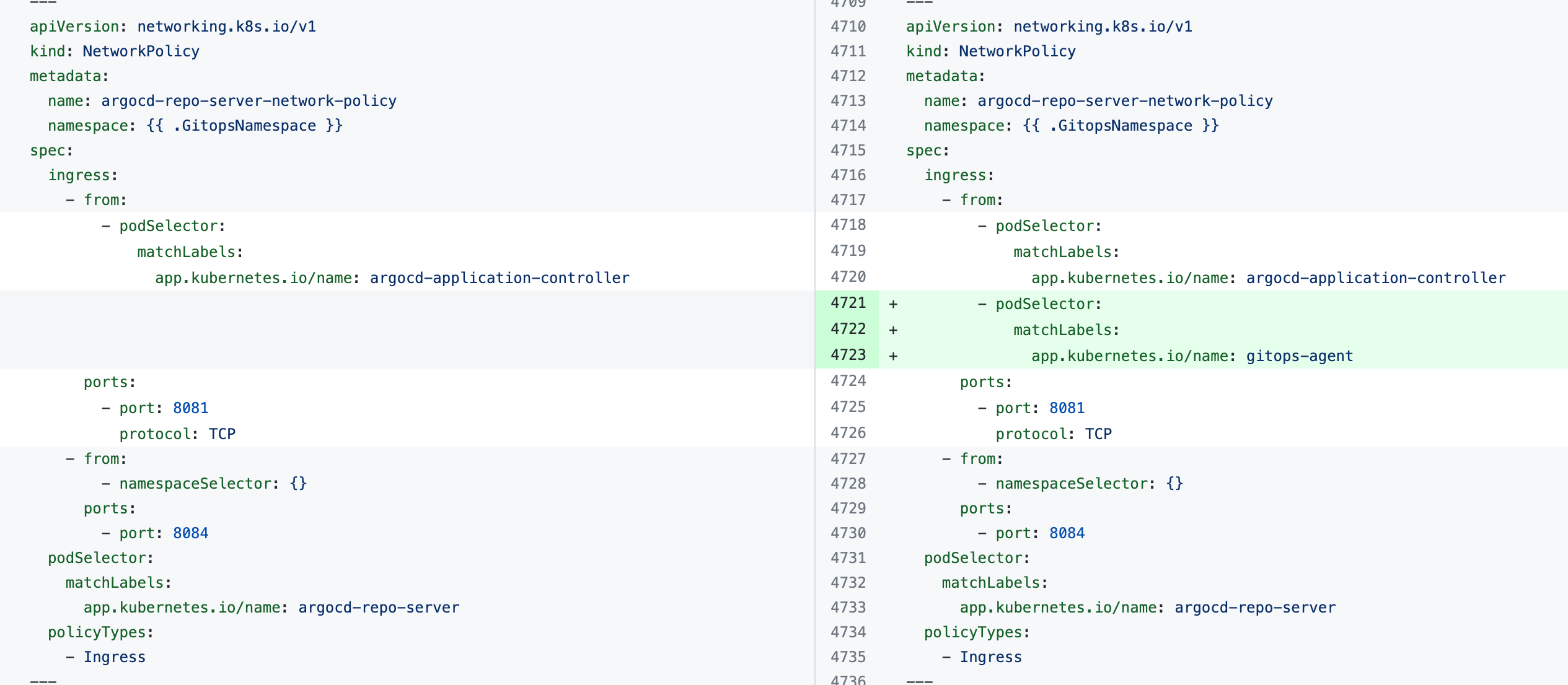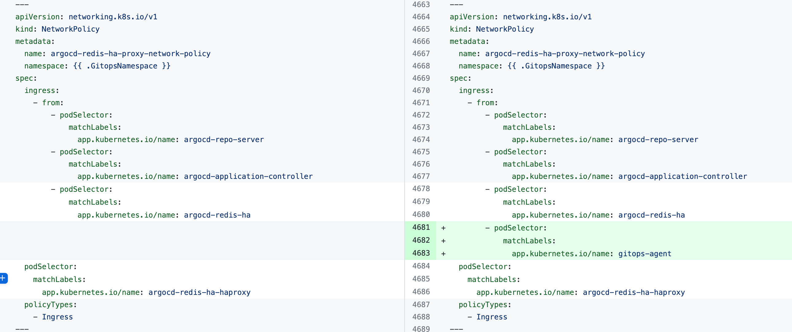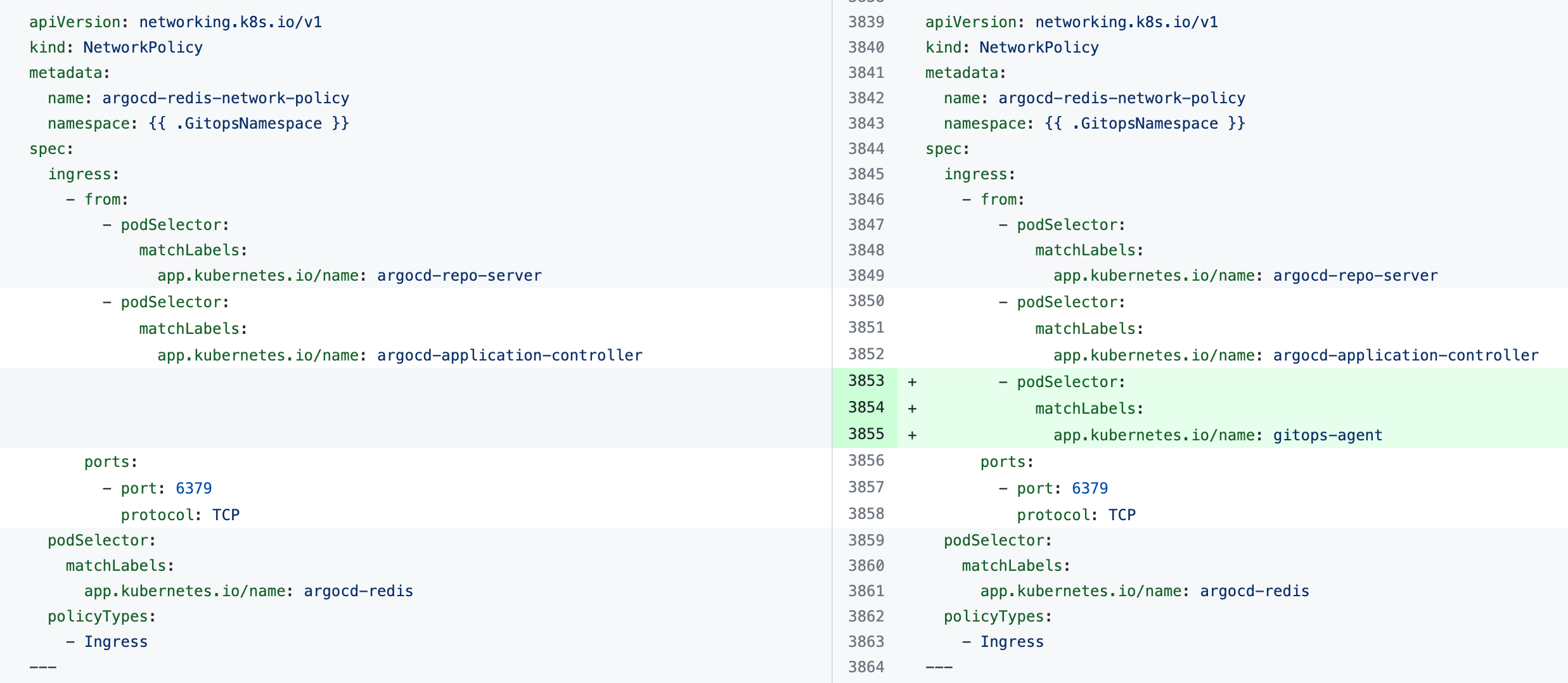 Add the following podSelector settings to the NetworkPolicy objects defined in your existing Argo CD argocd-redis and argocd-repo-server services.