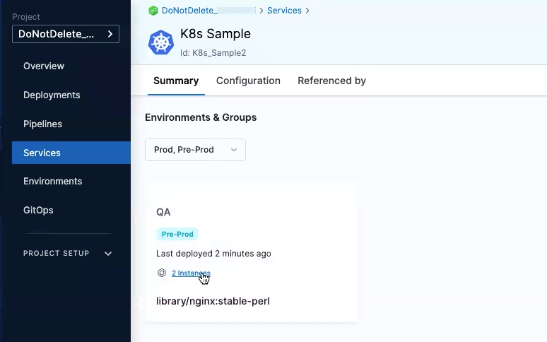 to the previously deployed instance with artifactlibrary/nginx:stable-perl