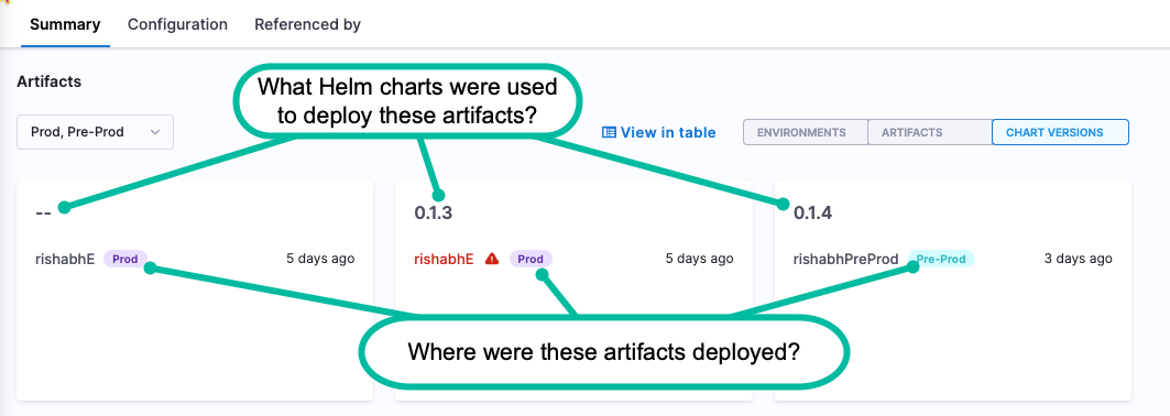 - Clicking the artifact name opens details for all environments where the artifact was deployed.