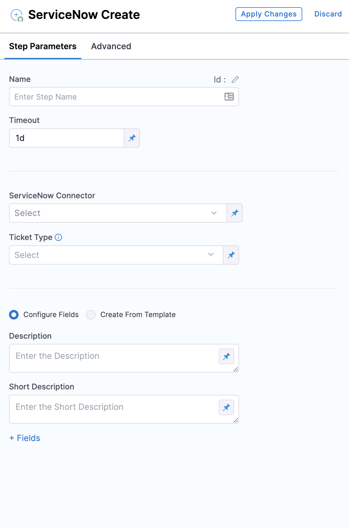 - You must add a Harness ServiceNow connector before or during the Create ServiceNow step setup.