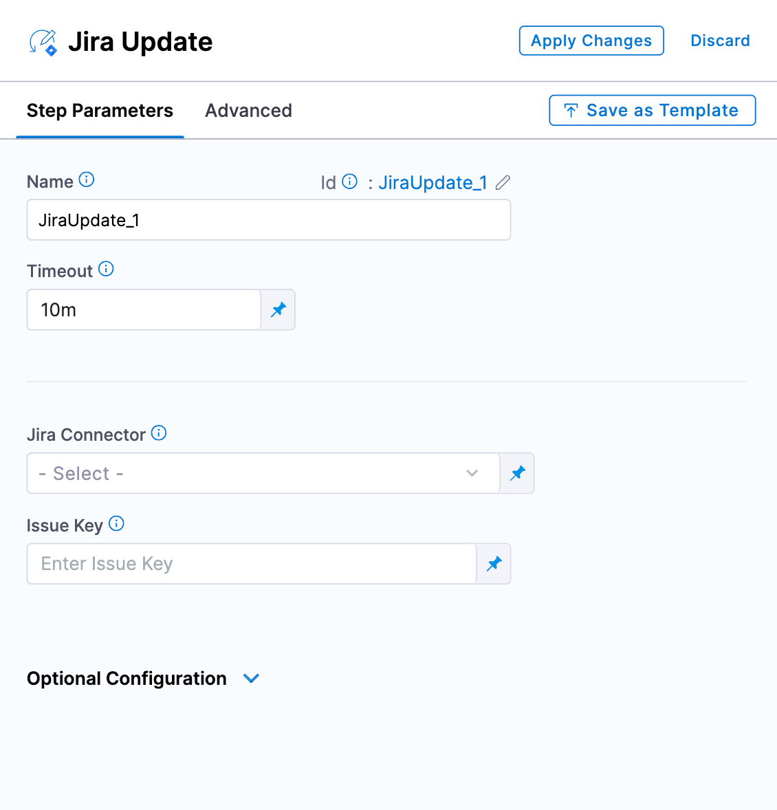 In Timeout, enter how long you want Harness to try to update the issue before failing (and initiating the stage or step failure strategy).