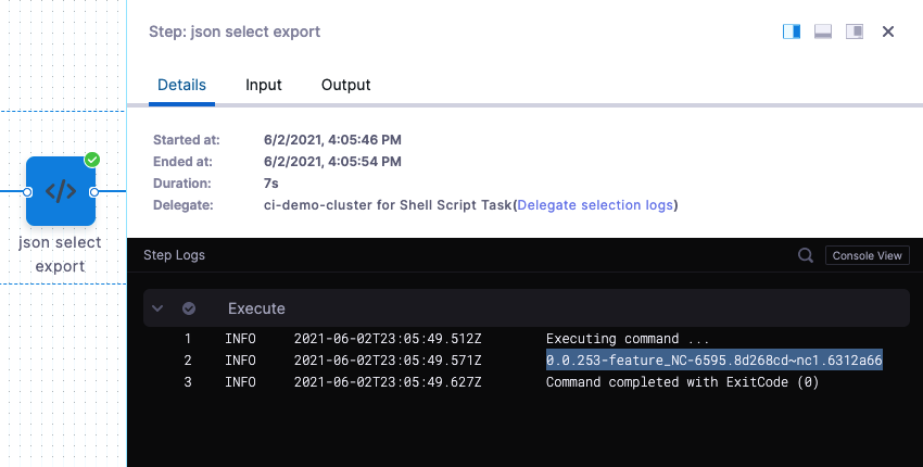 script: echo <+json.format(<+pipeline.stages.Functors.spec.execution.steps.jsonformat1.output.httpResponseBody>)>