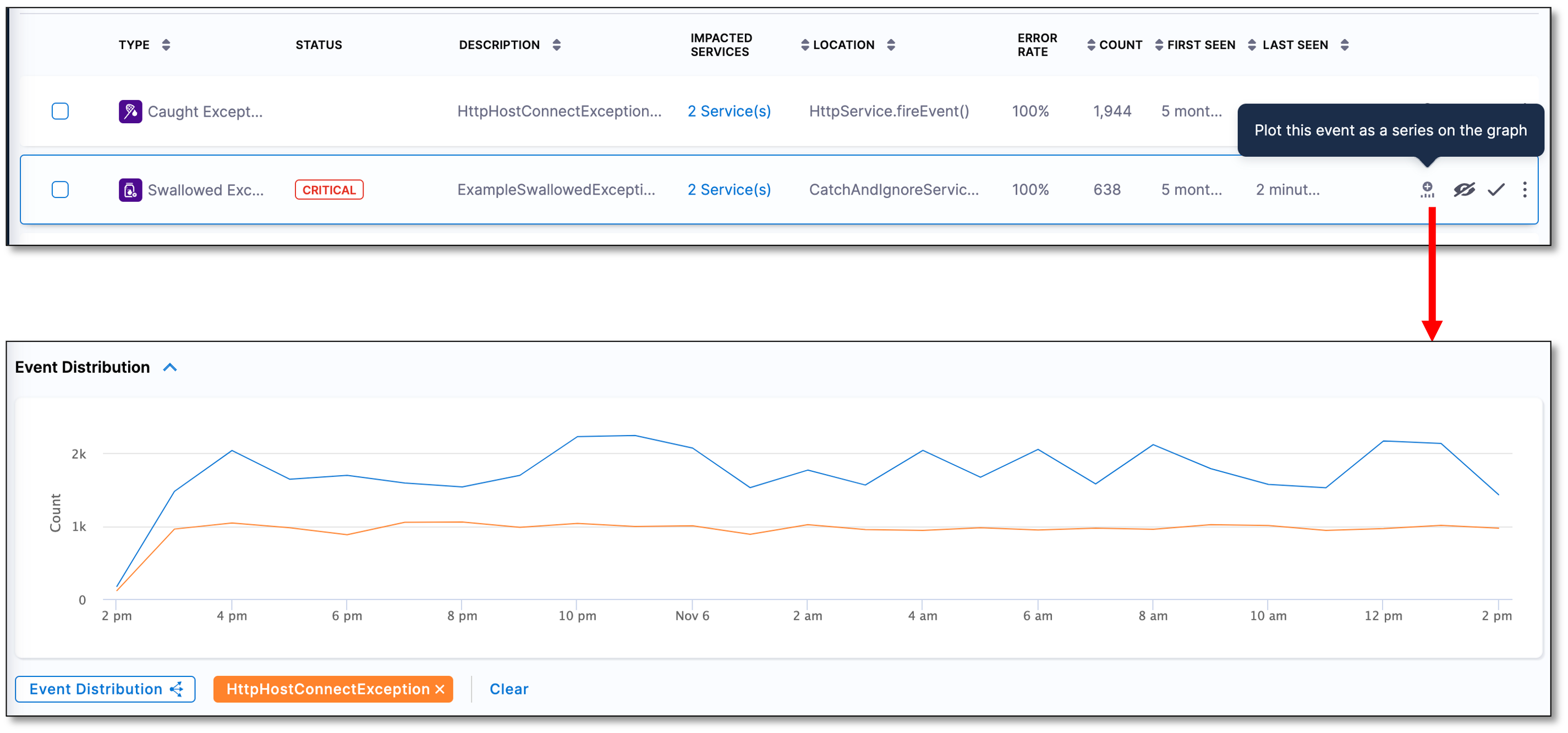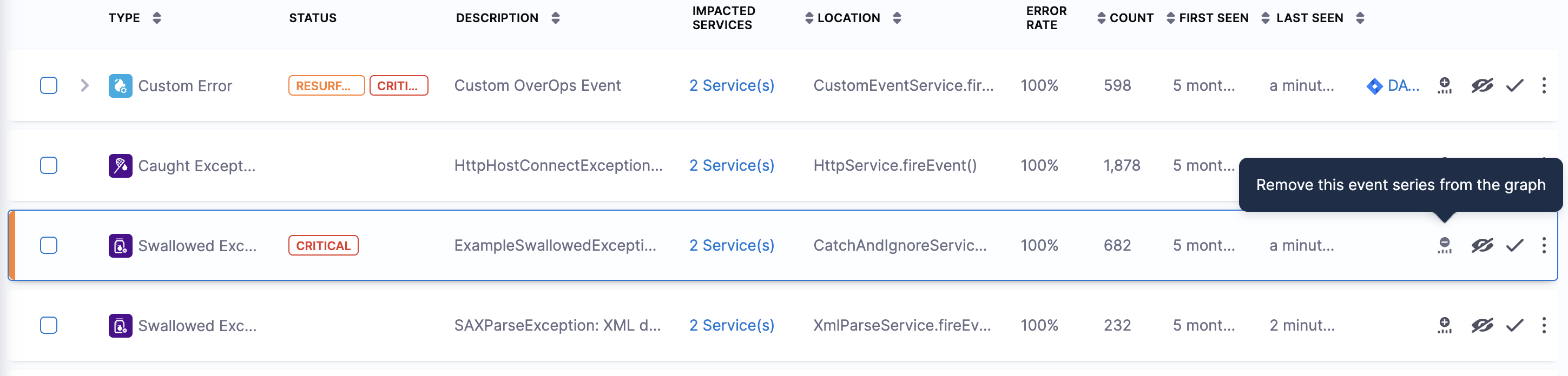 This adds the top error events as a series on the graph, providing an immediate overview of critical issues requiring attention.