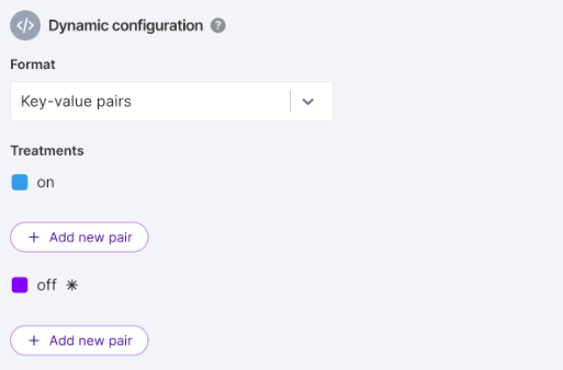 2. In the Format field of the Dynamic configuration area, select Key-value pairs as your format. You can then attach one or more configurations to each of your treatments.