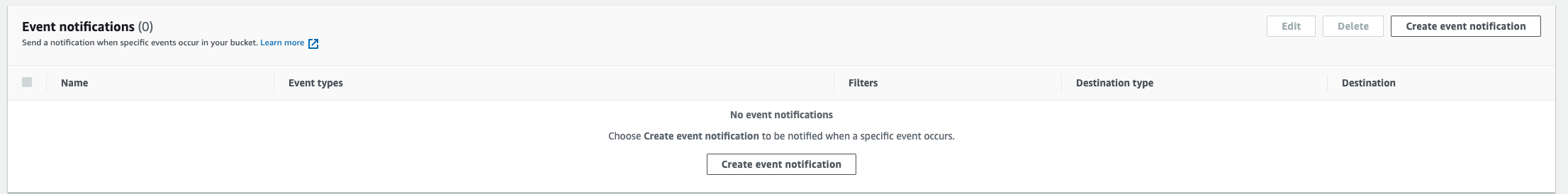 Under Event notifications, click Create event notification.