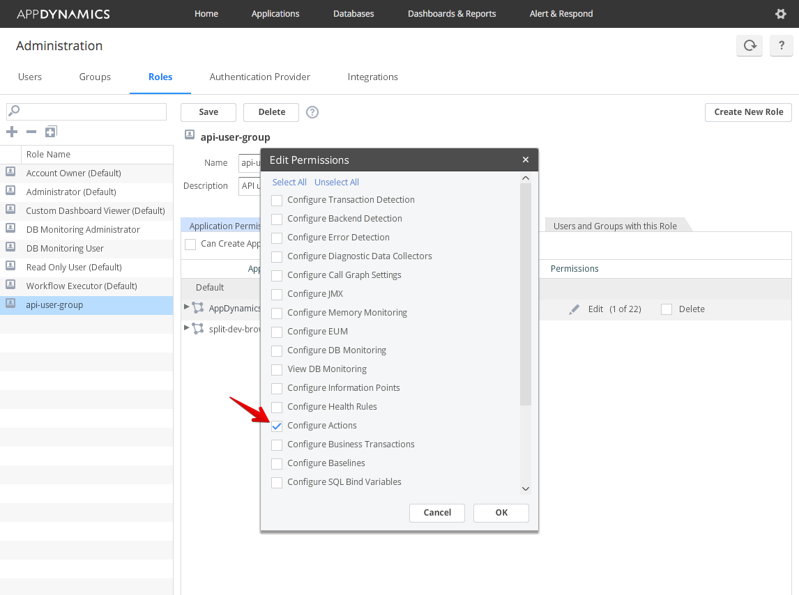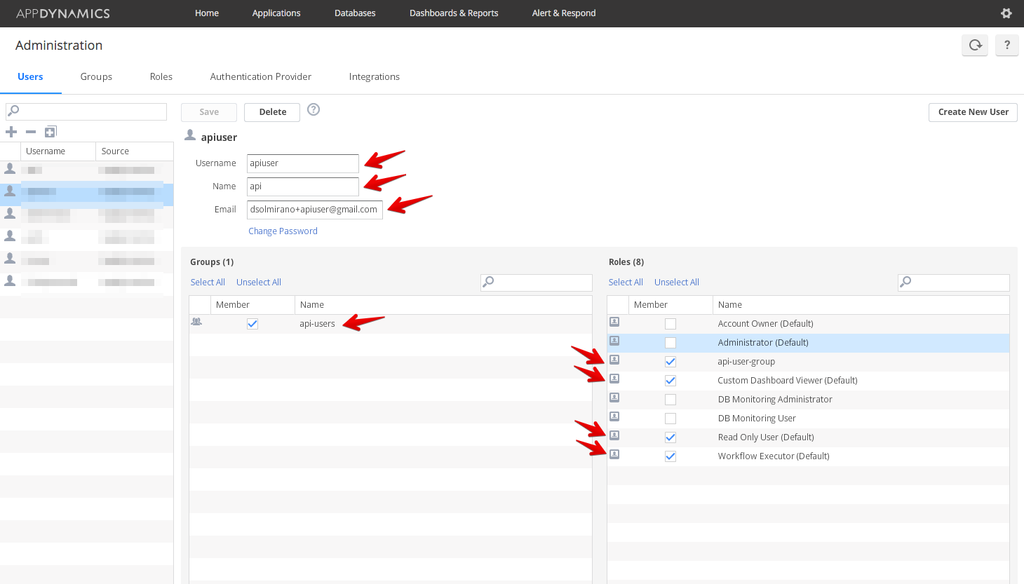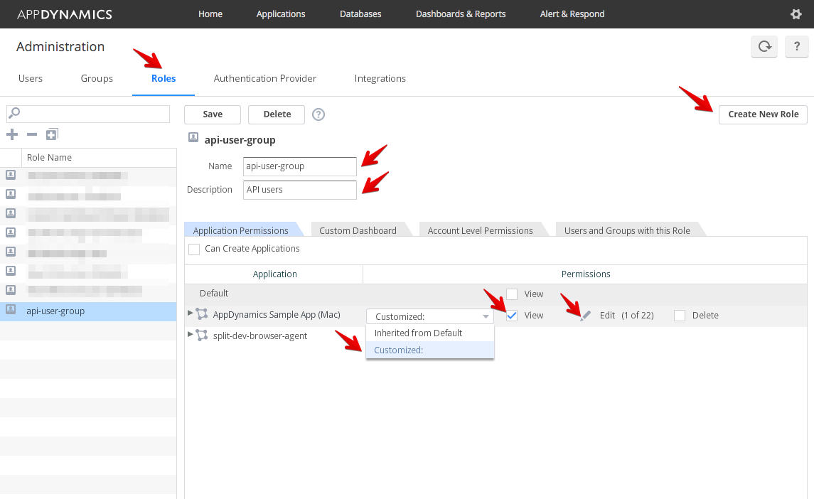 To connect Harness FME to AppDynamics, create a role and a user within that role.