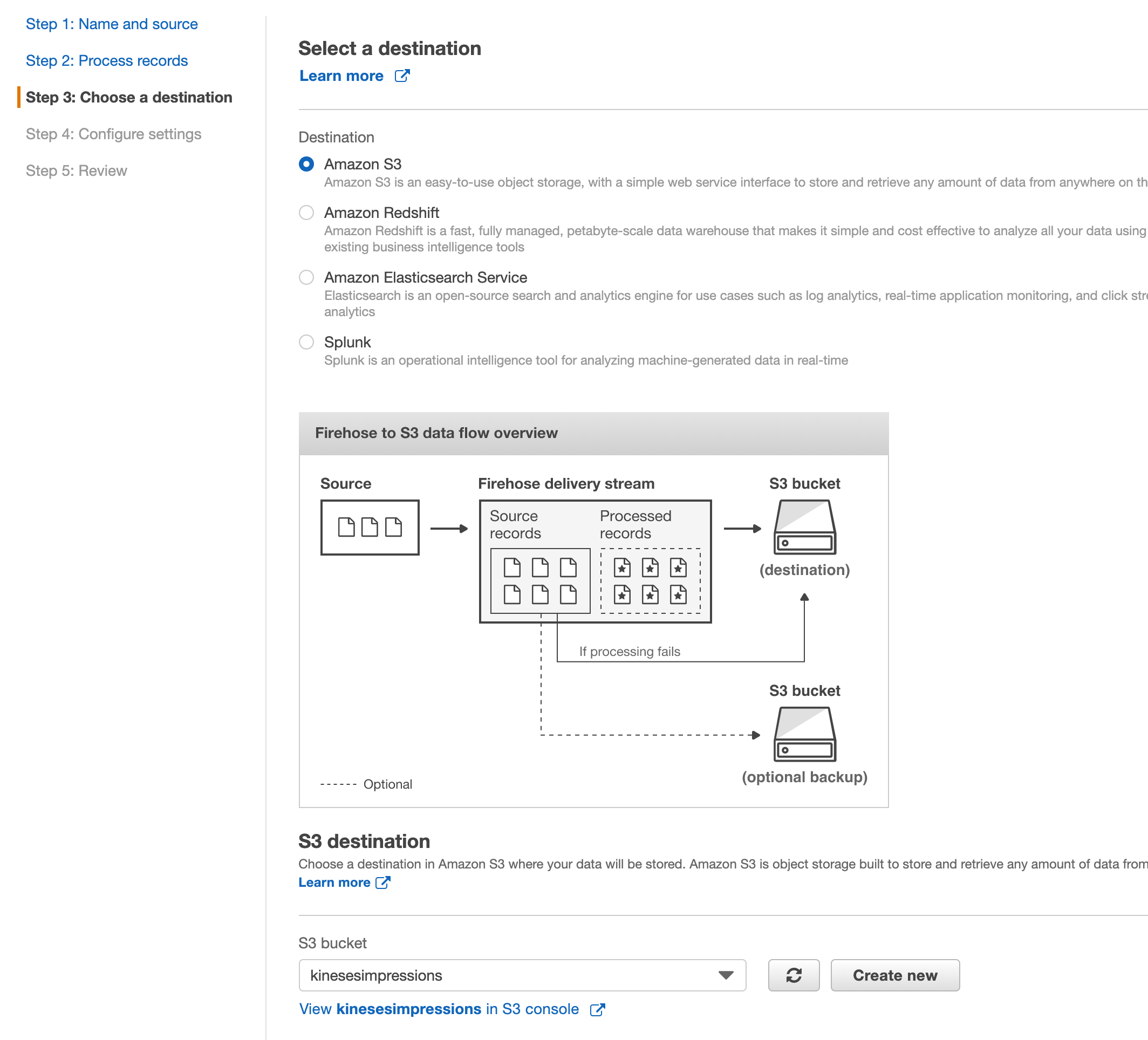 This page describes how to setup an AWS Kinesis Stream service to store Split Impressions data in AWS S3 in JSON format.