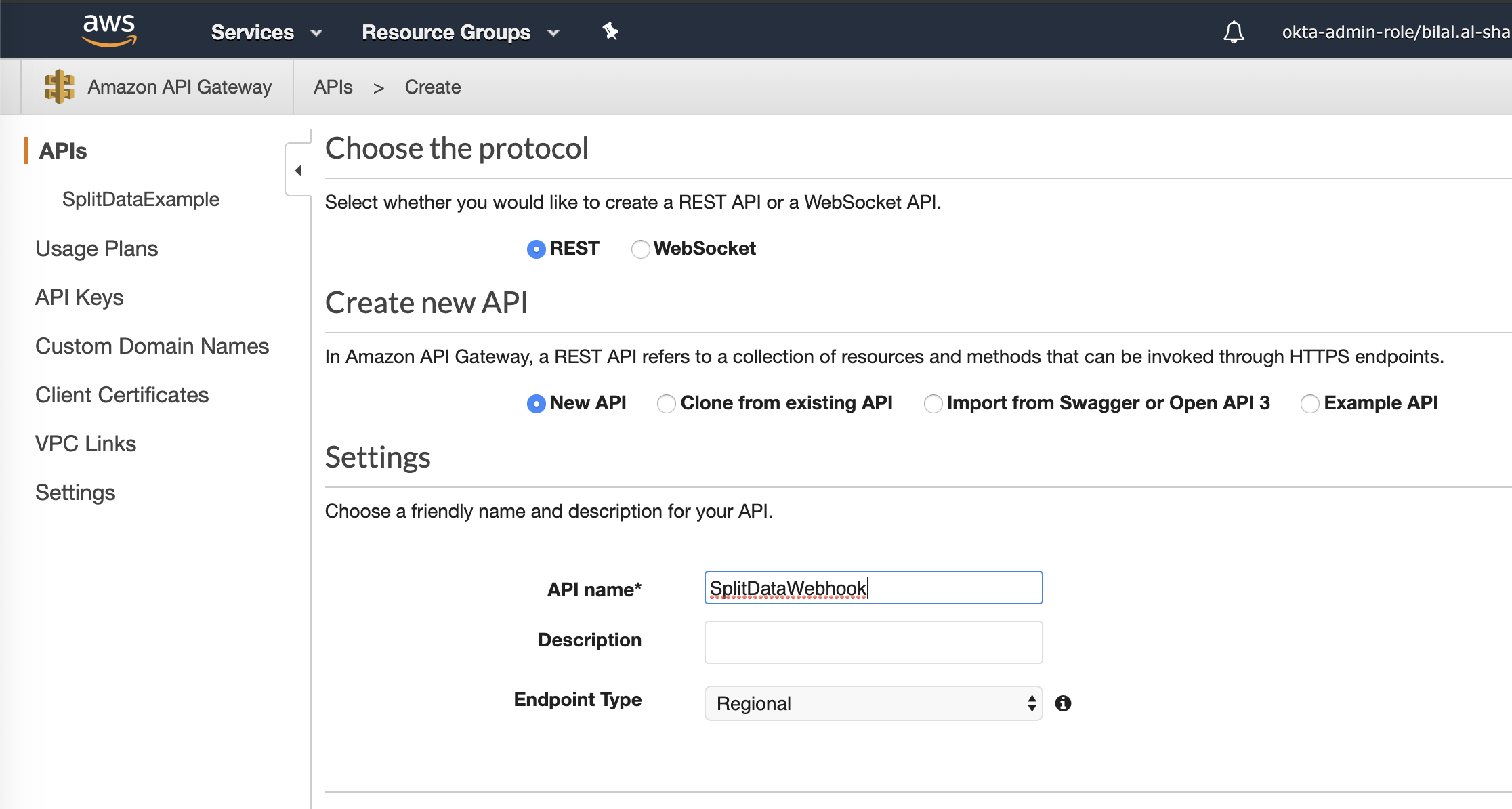 The last step is to create a Stage for your API Gateway, and generate the webhook URL under the Stages page, click Create.