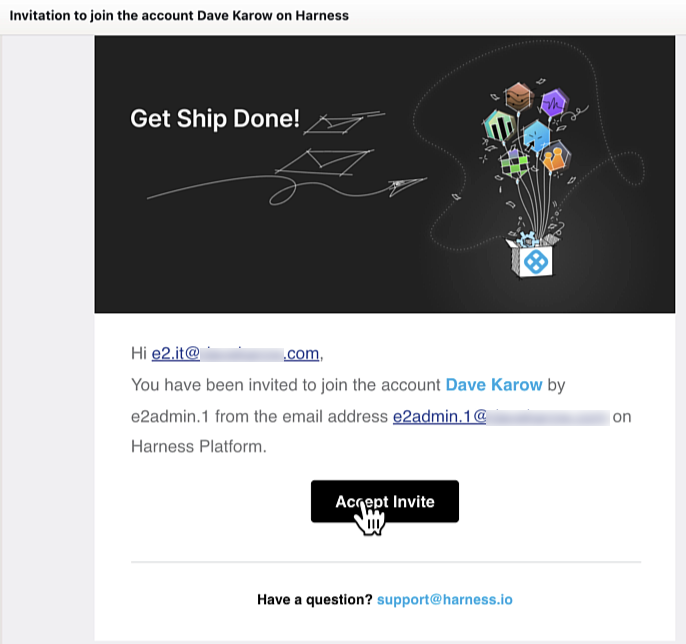 Your colleague will receive an email from Harness <noreply@harness.io>