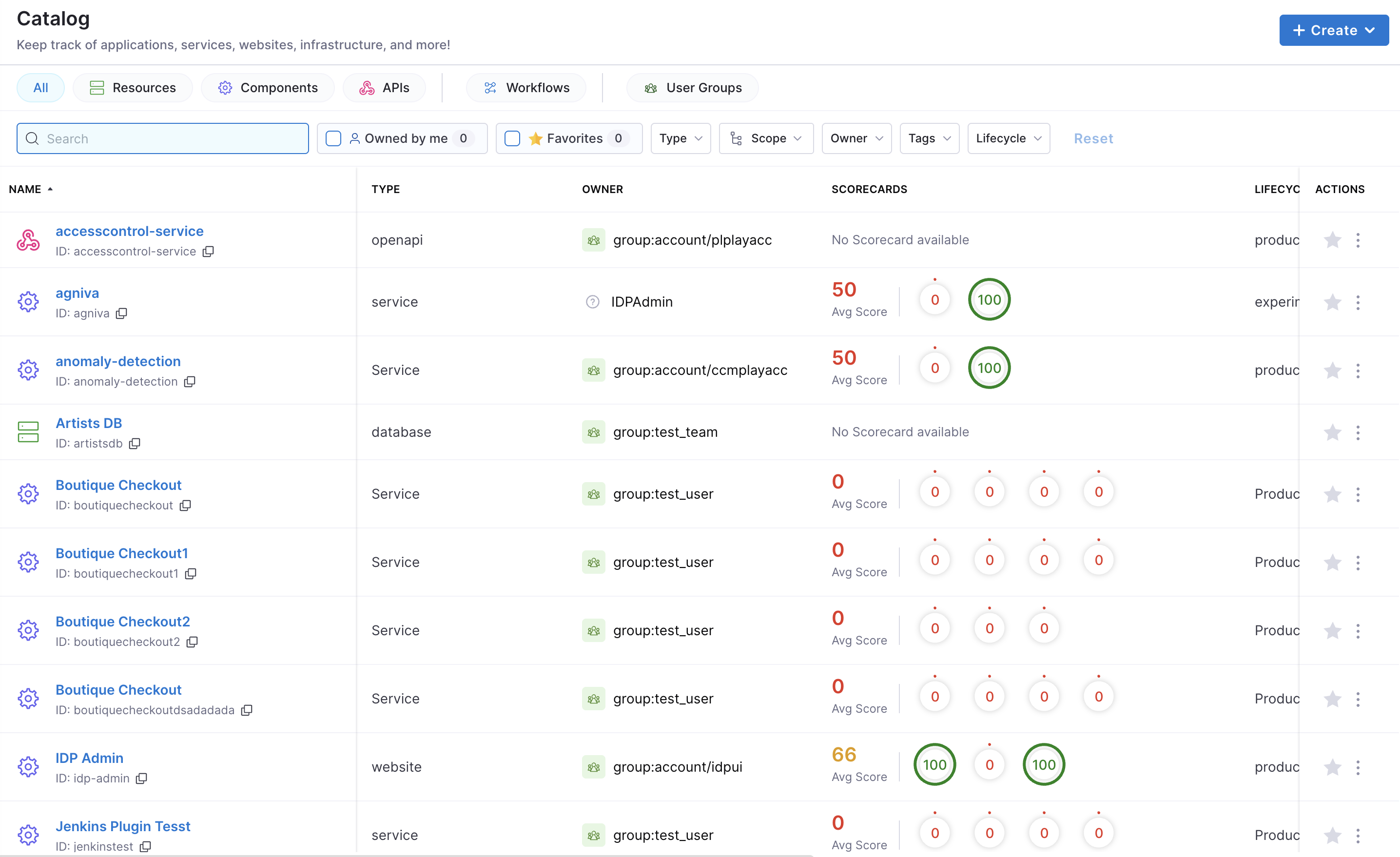 With the revamped Catalog UI, you can now use various scopes and filters to efficiently track all your applications, services, and other entities. It offers intuitive filtering and a streamlined way to access and manage everything within your Catalog. This update also introduces visibility into scorecard data and scope-level details—right within the Catalog—so you get deeper insights without navigating away.