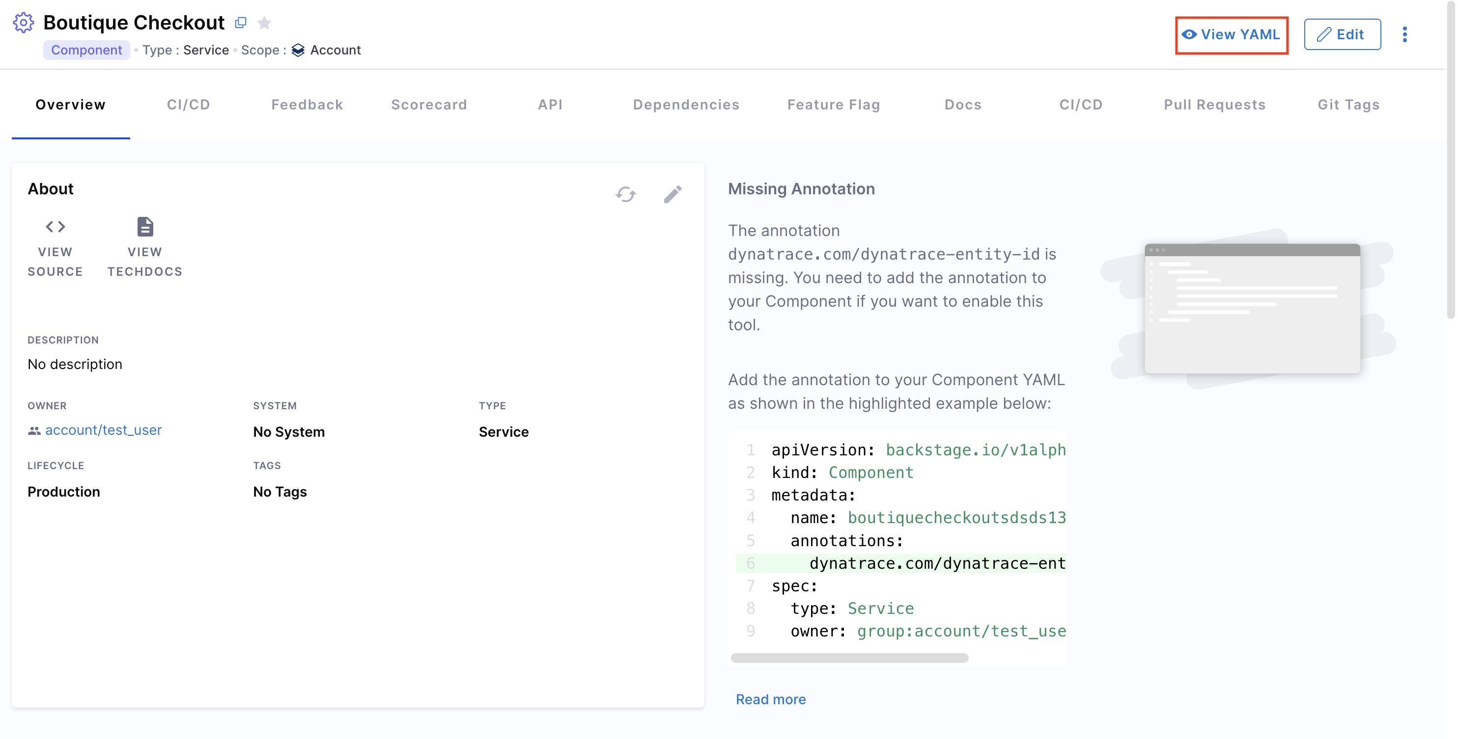 You can also view the entity’s YAML by clicking “View YAML” from the entity details screen.