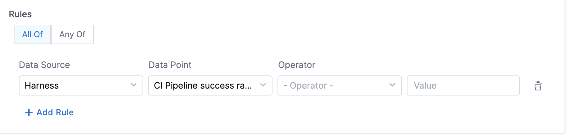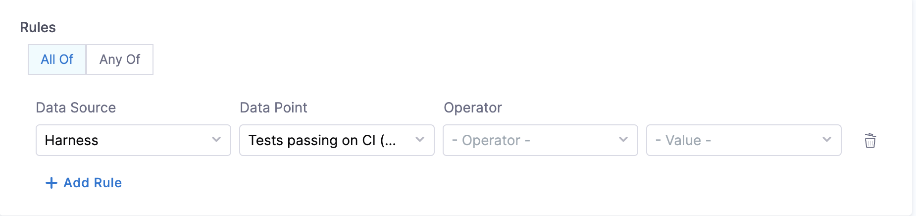 or from additional properties ingested using APIs as input variable(JEXL format) in Scorecard Checks. For example, <+metadata.testCoverageScore>
