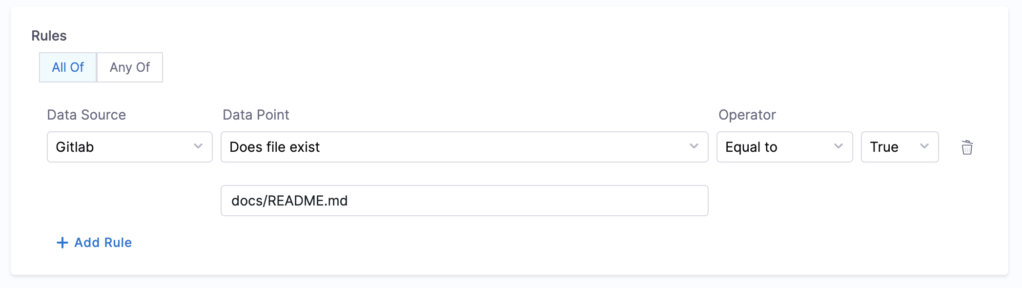 annotation to locate the repository and check for the file’s presence. Make sure to mention the filename with extension or relative path from the root folder (e.g.: README.md or docs/README.md) in the conditional input field. - Prerequisites: Provide suitable