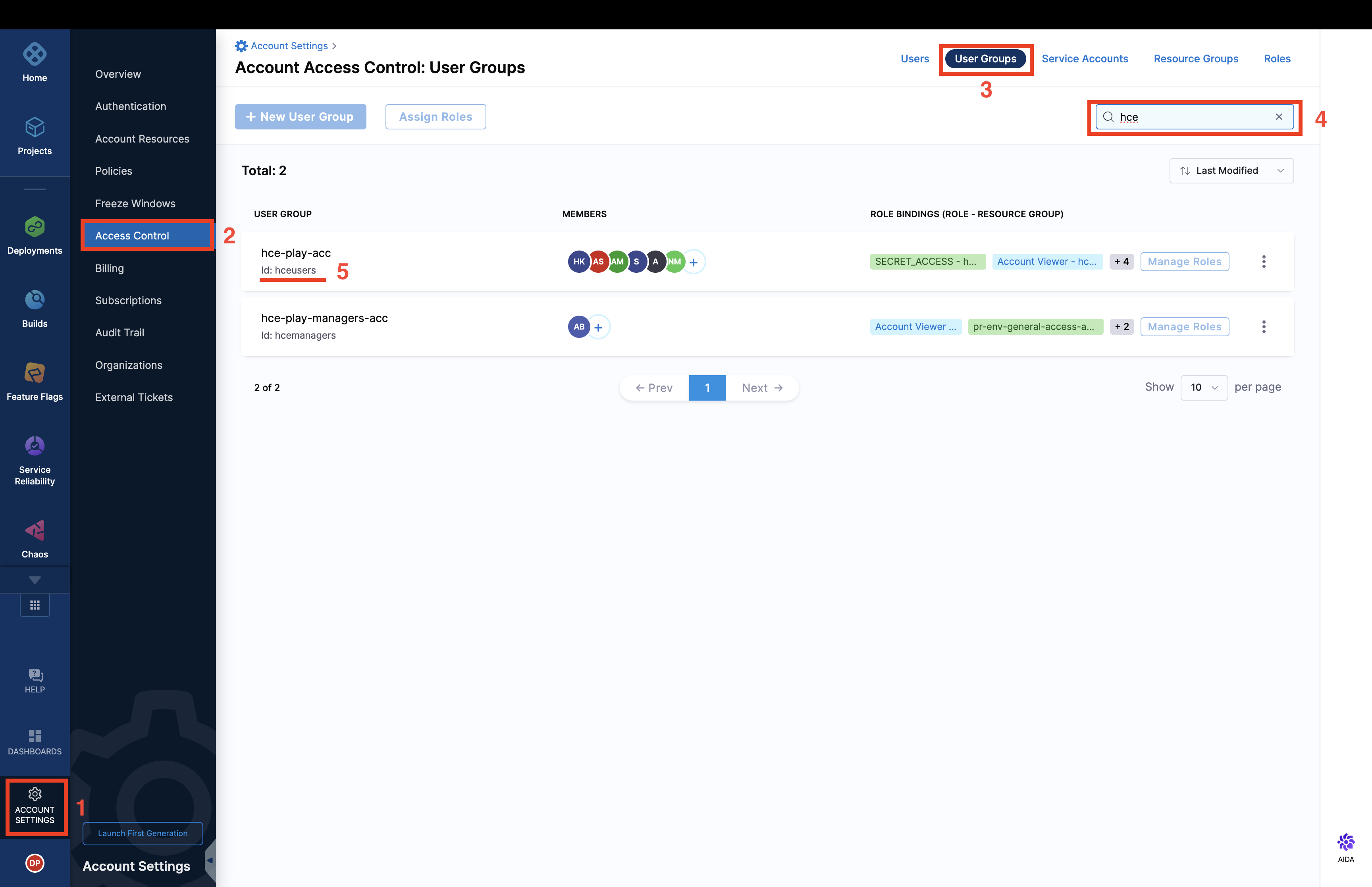- Navigate to the bottom left of the Harness dashboard and select Account settings.