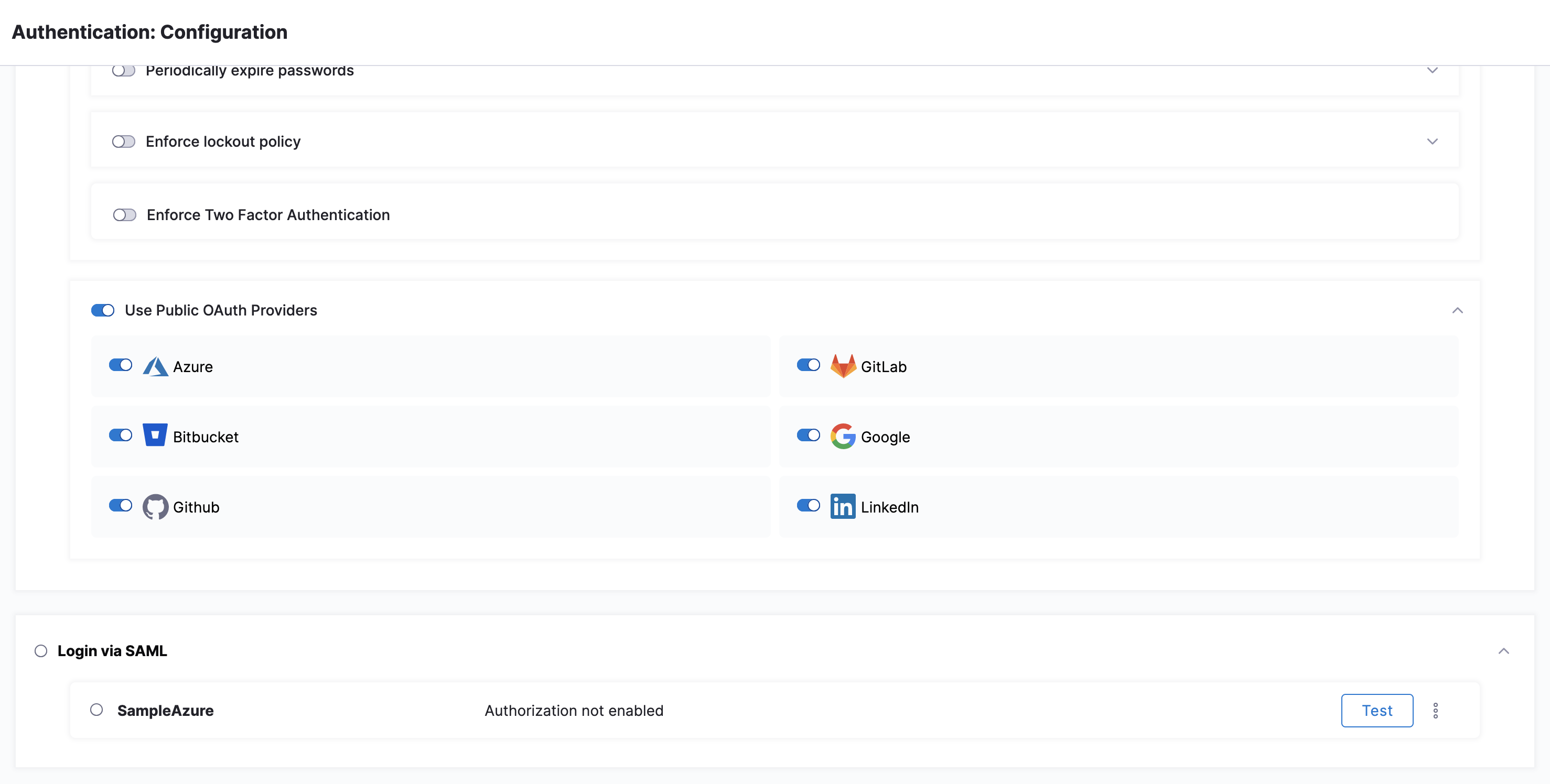 - Select SAML Provider to add a SAML configuration.