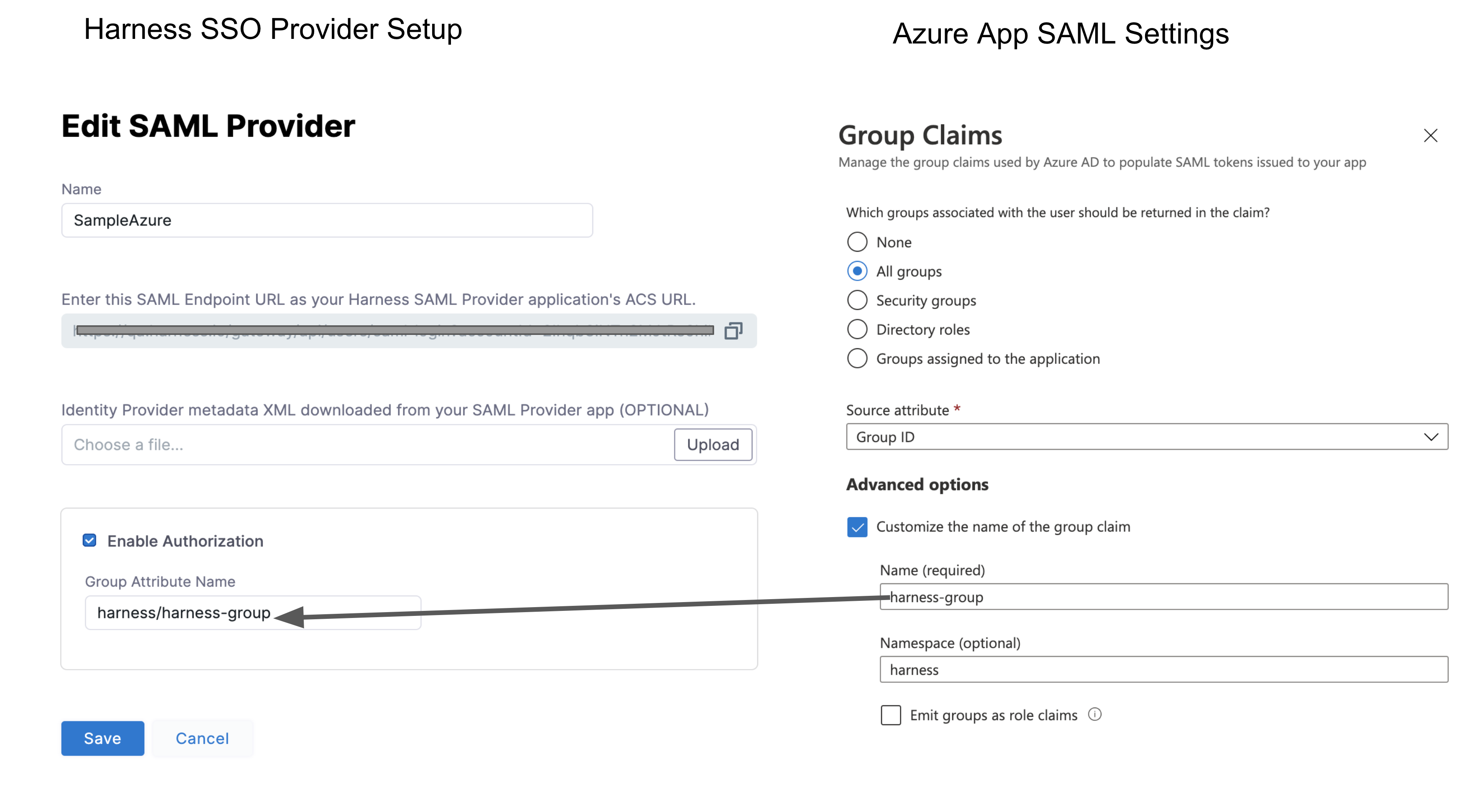 - SAML metadata file: This file is provided by your SAML provider app. You upload this file into the Harness Single Sign-On (SSO) Provider dialog to integrate the app with Harness.