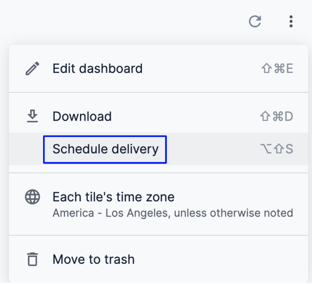 Click the three-dot menu in the upper right of the dashboard and select Schedule delivery.