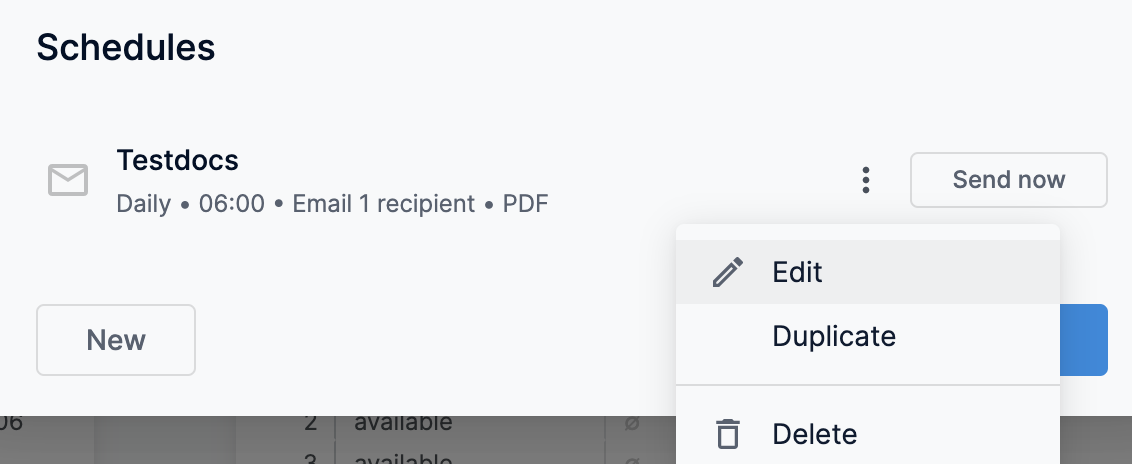 - In Schedules, click the three-dot menu that applies to the schedule you would like to duplicate.