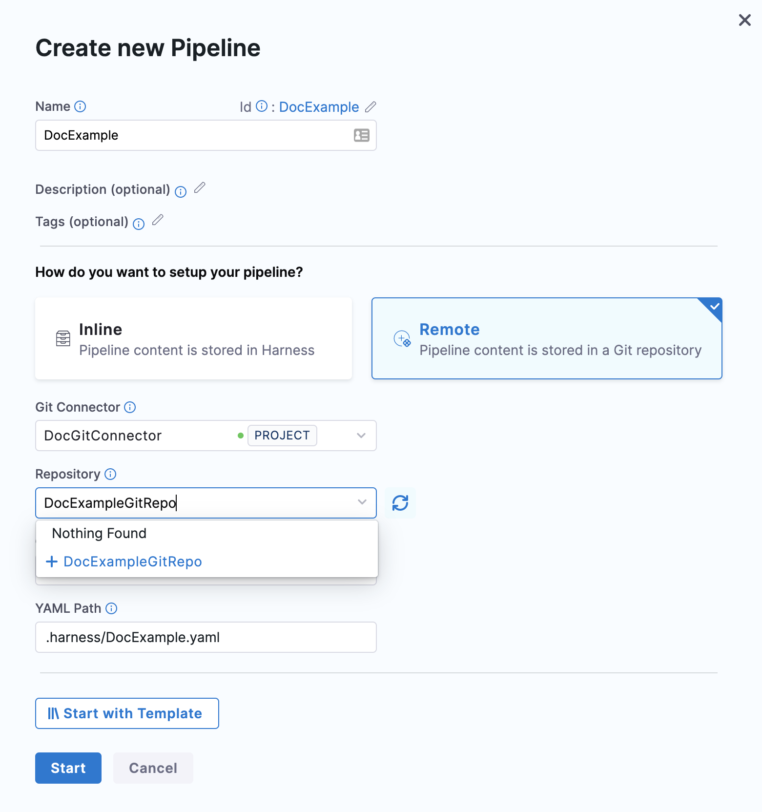 Harness loads your pipeline depending on where you saved your remote pipeline.