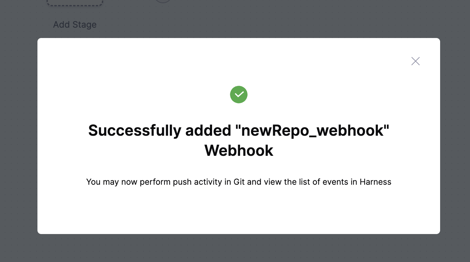 - Harness automatically registers the webhook using the same Git connector that was used when the entity was created.