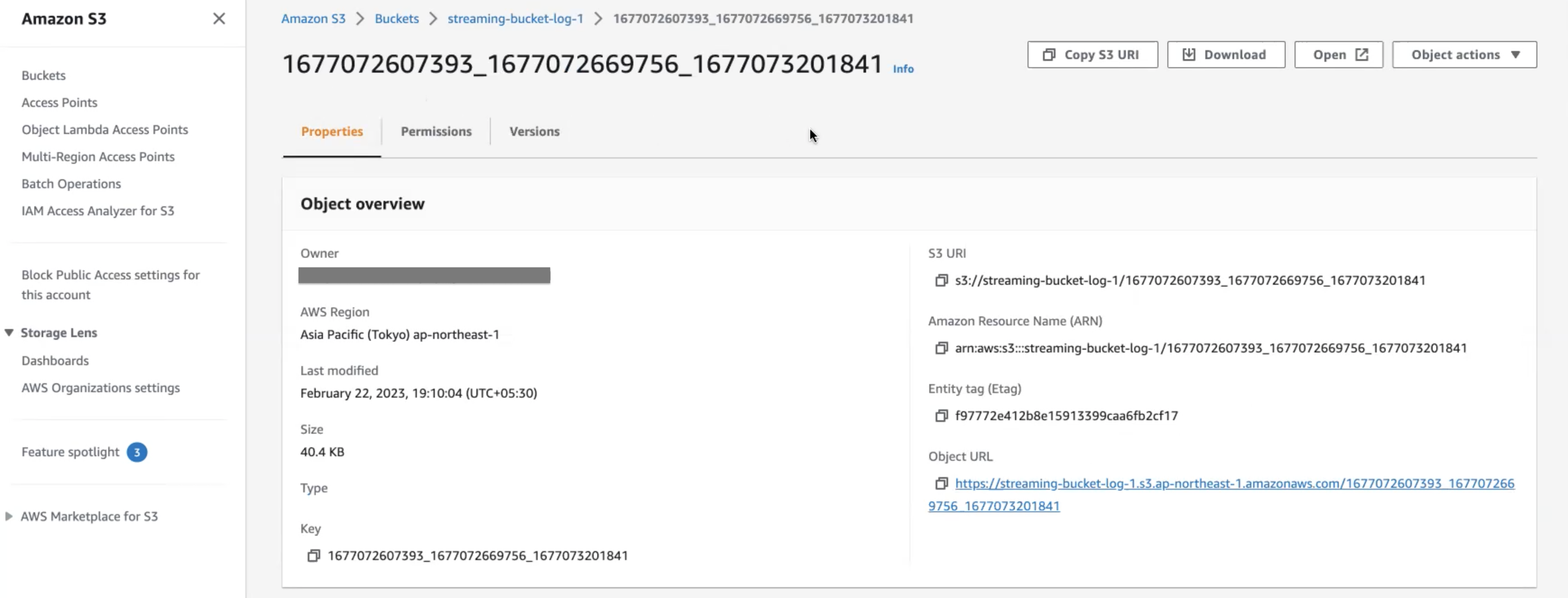 Here is an example of an audit stream file in one of the Amazon S3 buckets.