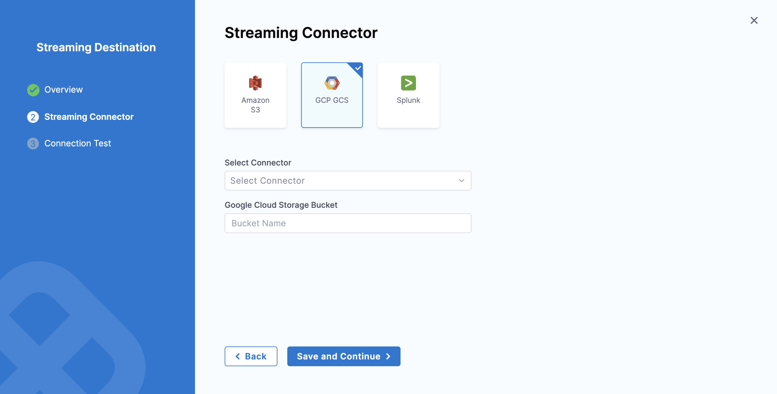 After you add your streaming destination, you're ready to configure the streaming connector.