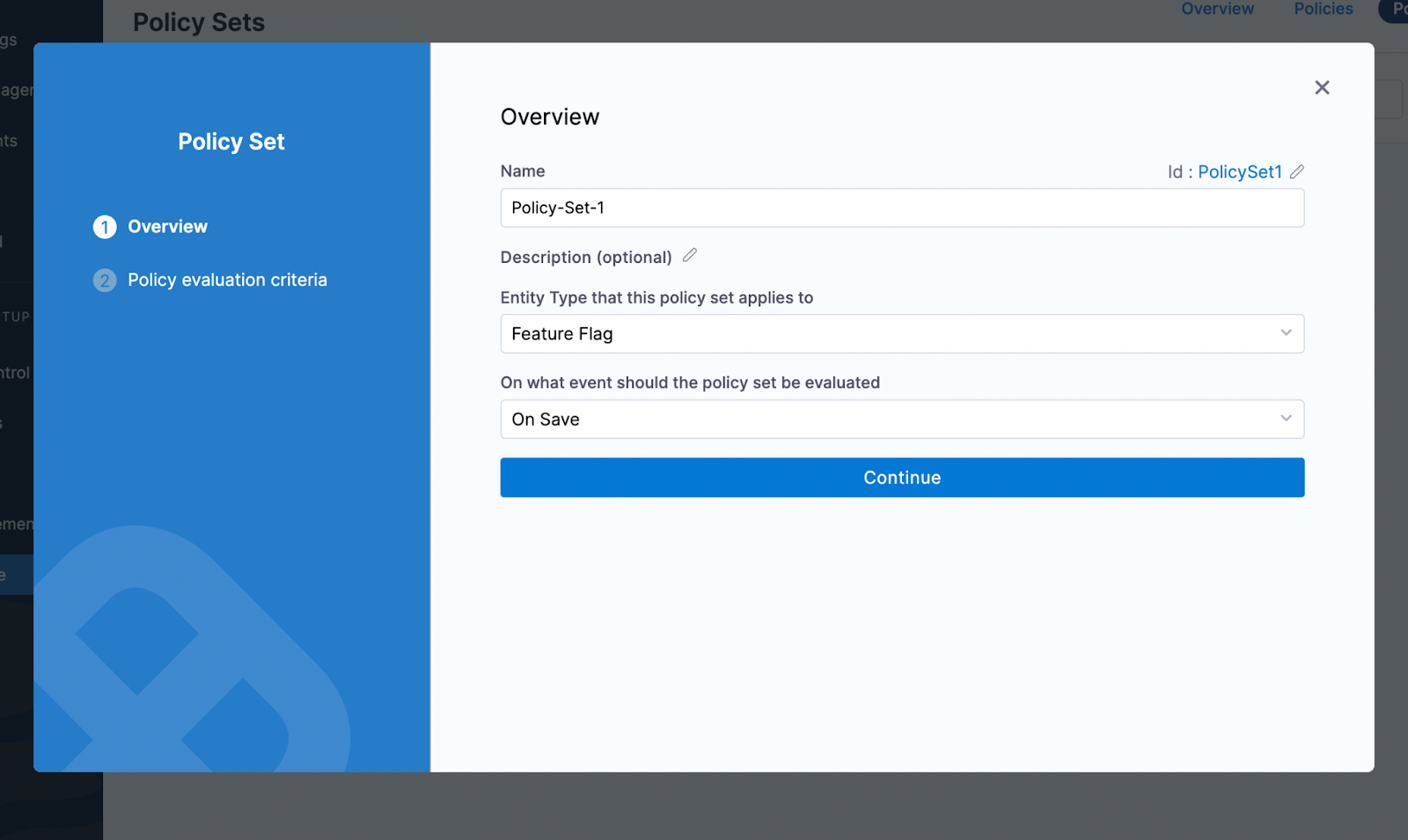 Warn & continue: If a policy isn’t met when the Feature Flag is evaluated, you receive a warning but the flag is saved and you can continue.