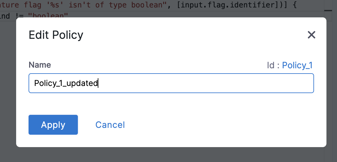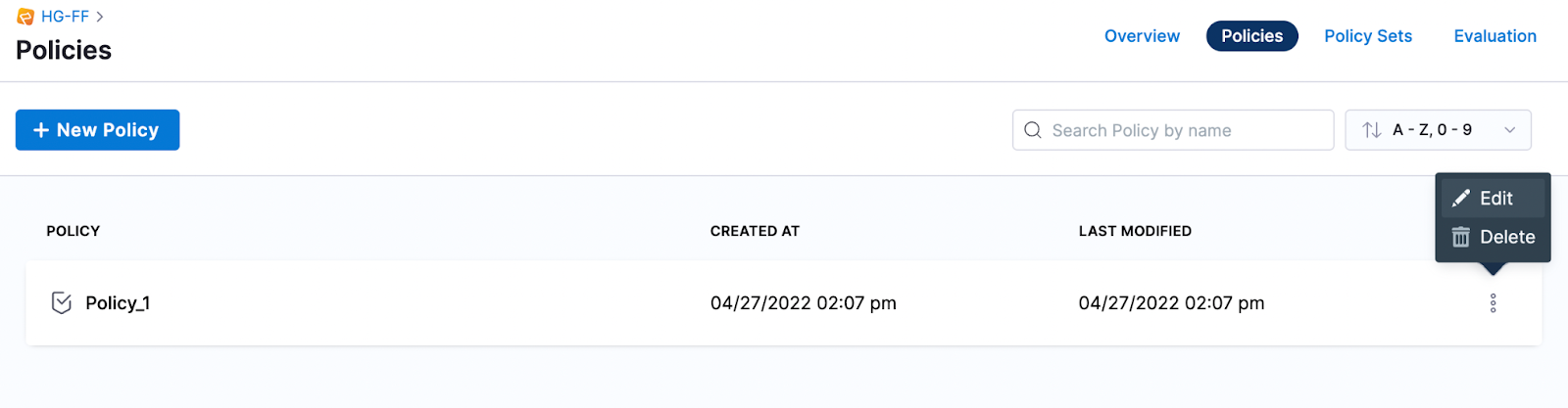 After you create an individual policy, you must add it to a Policy Set before you can apply it to your Feature Flags.