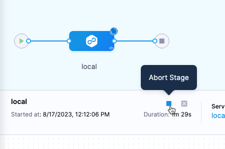- The stage finishes executing the current task and then stops. Then the pipeline stops, and the pipeline status becomes Aborted. Stages after the aborted stage do not run.
