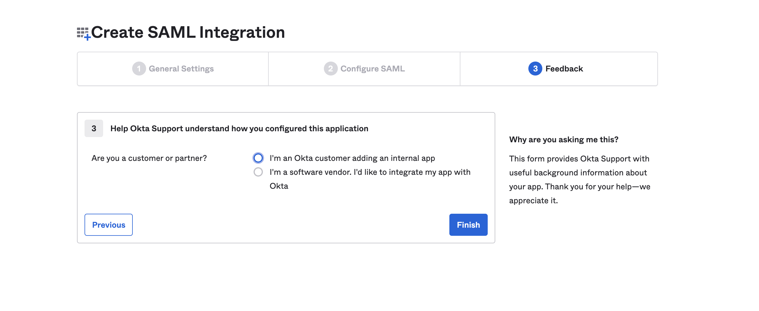 9. In the Feedback options, select the relevant option, and then select Finish.