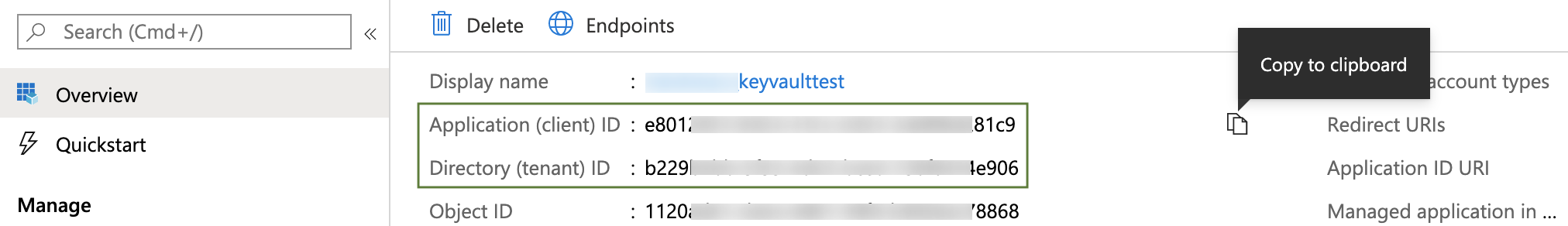 2. Enter Client ID, Tenant ID corresponding to the fields highlighted below in the Azure UI: