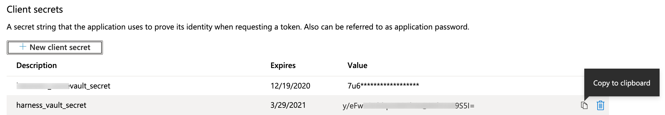 1. Find your new key in the Client secrets section, and copy its value to your clipboard.