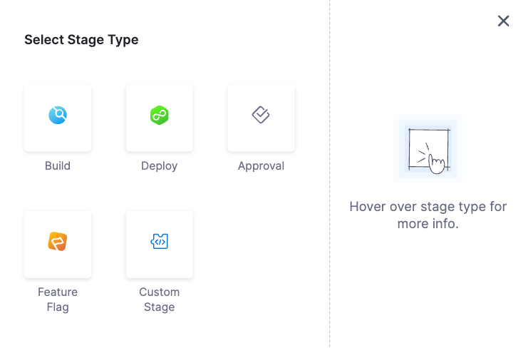 1. In Harness, open the pipeline, and then select Add Stage. The Select Stage Type settings open.