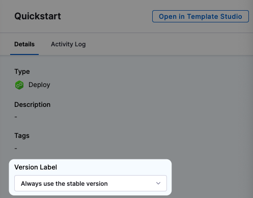 7. In Version Label, enter the version of the stage, for example, v1. Versioning a template enables you to create a new template without modifying the existing one. For more information, go to Versioning.