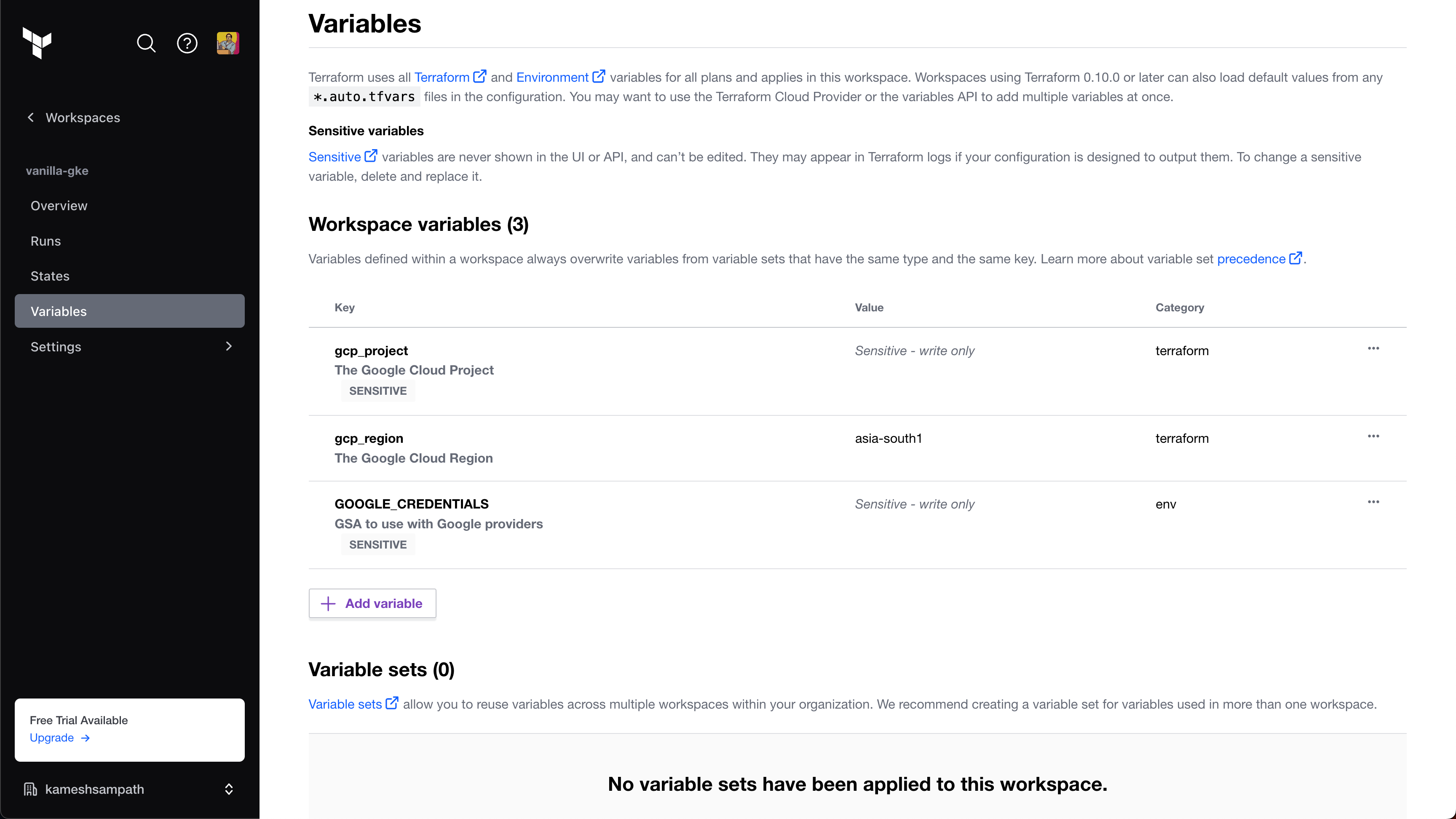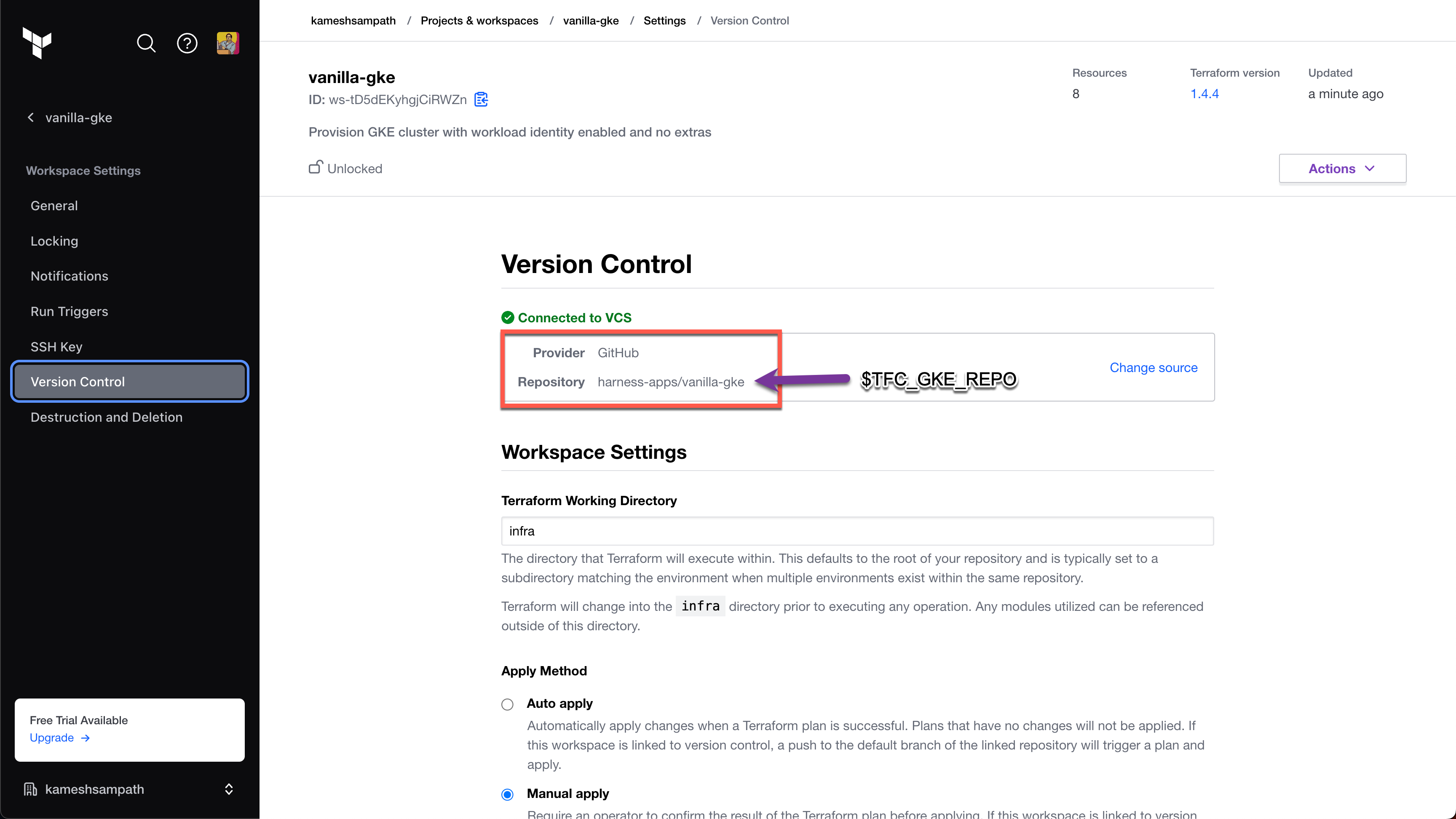 - IaC vanilla-gke: The Terraform source repository used with Terraform Cloud to provision GKE. Code samples in this tutorial reference this repo by